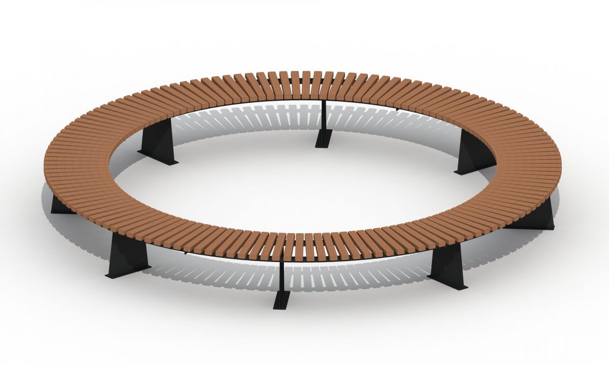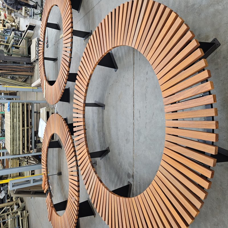 Nouveauté 2022 collection banc forme circulaire alliance bois dur et métal.